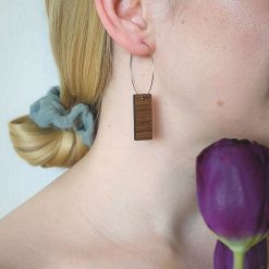 The earrings are made of domestic birch with a special teak veneer surface on top.